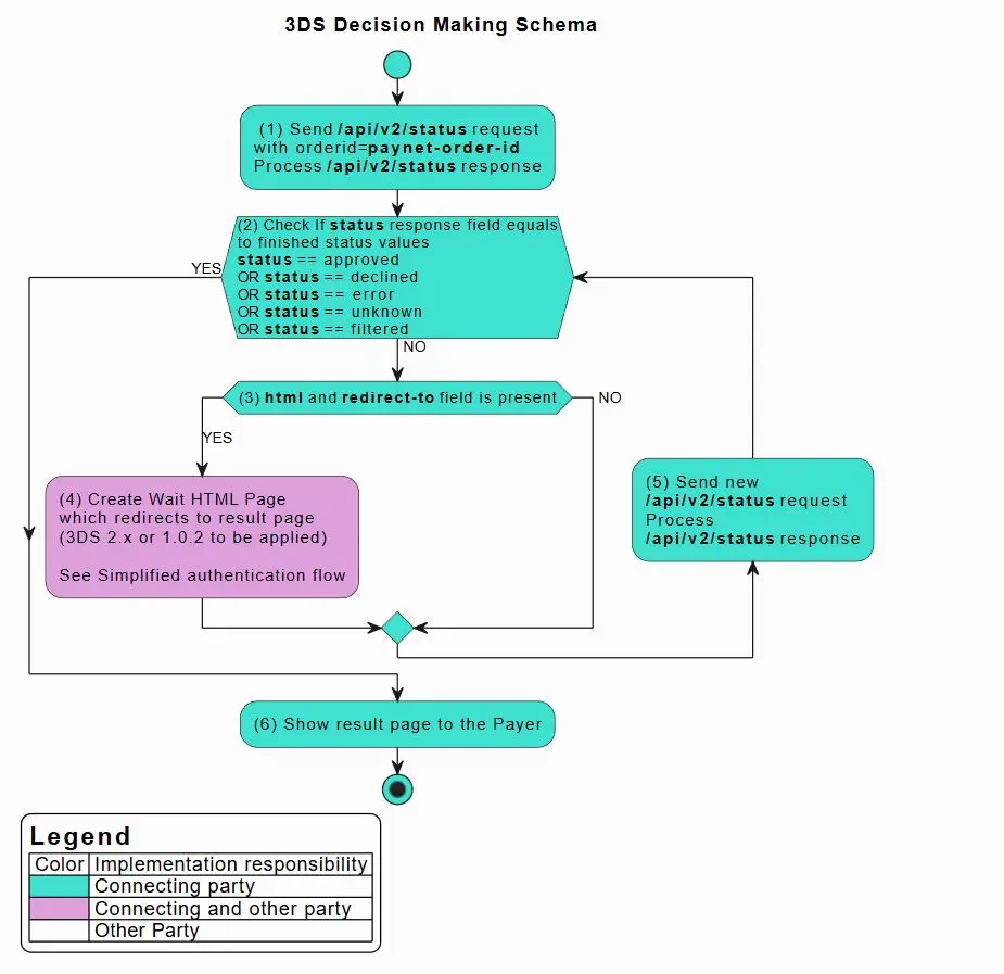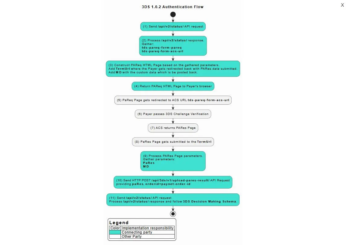 | PaReq | ACS 3DS PaReq data, which received by the Connecting Party in the /api/v2/status/ response. The same as tds-pareq-form-pareq. | Required |